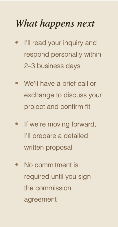 Whether you have a clear vision or just a feeling about what you want, I'd love to hear from you. Fill out the form below and I'll be in touch within a few days.